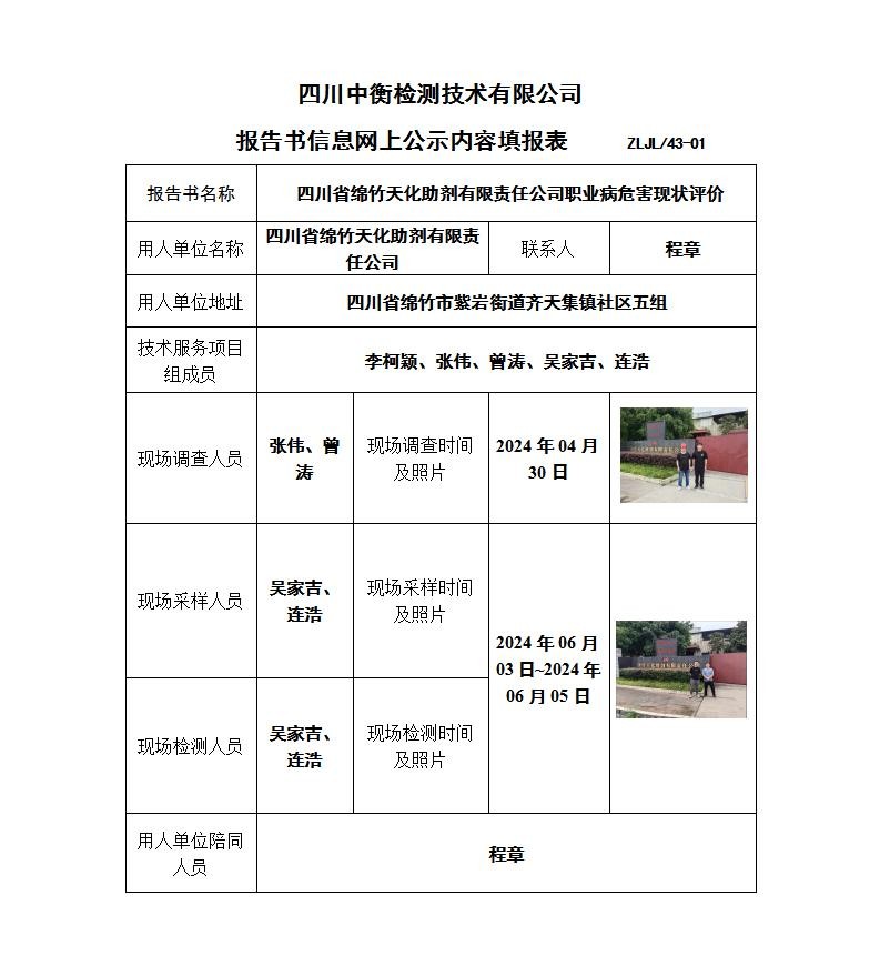 四川省綿竹天化助劑有限責(zé)任公司職業(yè)病危害現(xiàn)狀評(píng)價(jià)