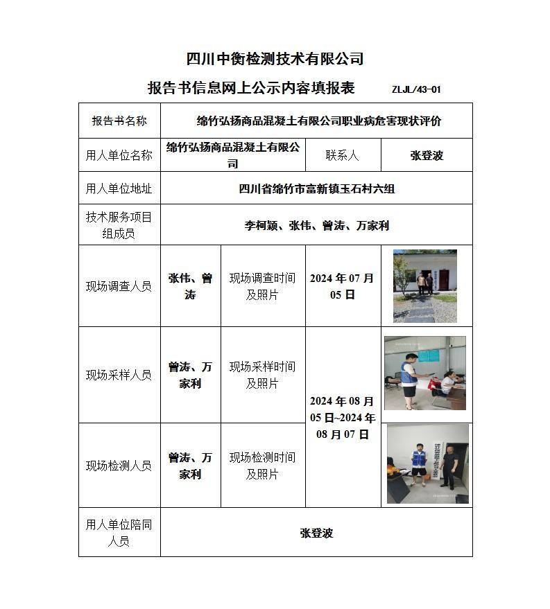 綿竹弘揚(yáng)商品混凝土有限公司職業(yè)病危害現(xiàn)狀評(píng)價(jià)