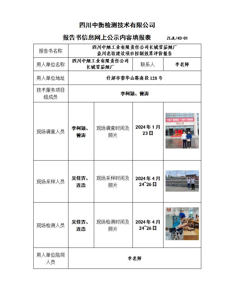 四川中煙工業(yè)有限責(zé)任公司長(zhǎng)城雪茄煙廠 益川老坊建設(shè)項(xiàng)目 職業(yè)病危害控制效果評(píng)價(jià)報(bào)告書(shū)