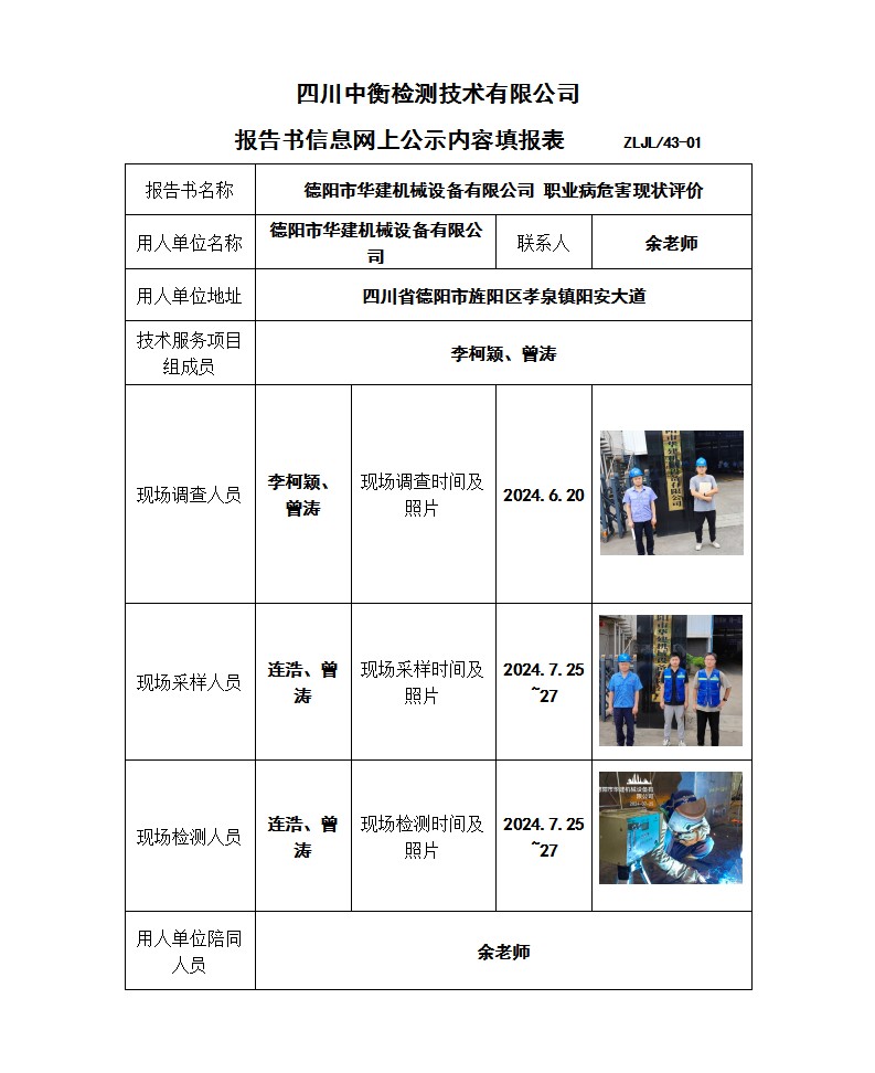 德陽市華建機(jī)械設(shè)備有限公司 職業(yè)病危害現(xiàn)狀評價報告書