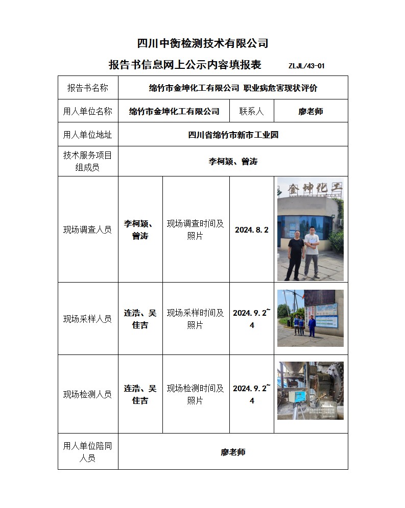 綿竹市金坤化工有限公司 職業(yè)病危害現(xiàn)狀評(píng)價(jià)報(bào)告書