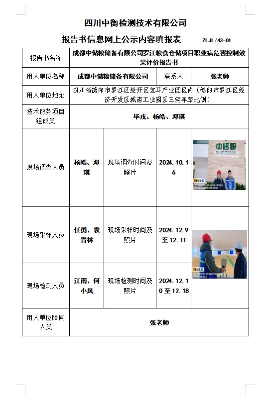 成都中儲(chǔ)糧儲(chǔ)備有限公司羅江糧食倉儲(chǔ)項(xiàng)目職業(yè)病危害控制效果評(píng)價(jià)報(bào)告書