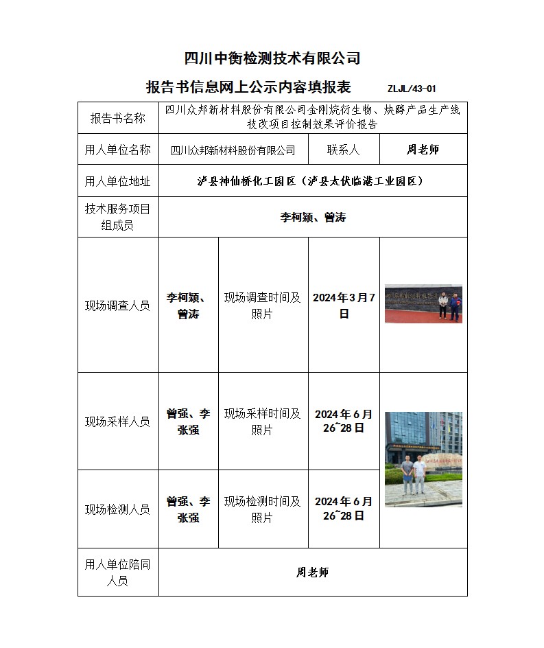 四川眾邦新材料股份有限公司 金剛烷衍生物、炔醇產(chǎn)品生產(chǎn)線技改項(xiàng)目 職業(yè)病危害控制效果評(píng)價(jià)報(bào)告書