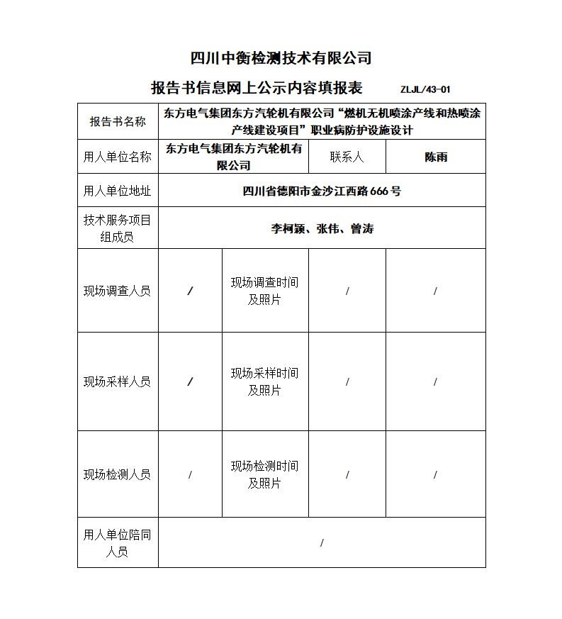 東方電氣集團東方汽輪機有限公司“燃機無機噴涂產(chǎn)線和熱噴涂產(chǎn)線建設(shè)項目”職業(yè)病防護設(shè)施設(shè)計
